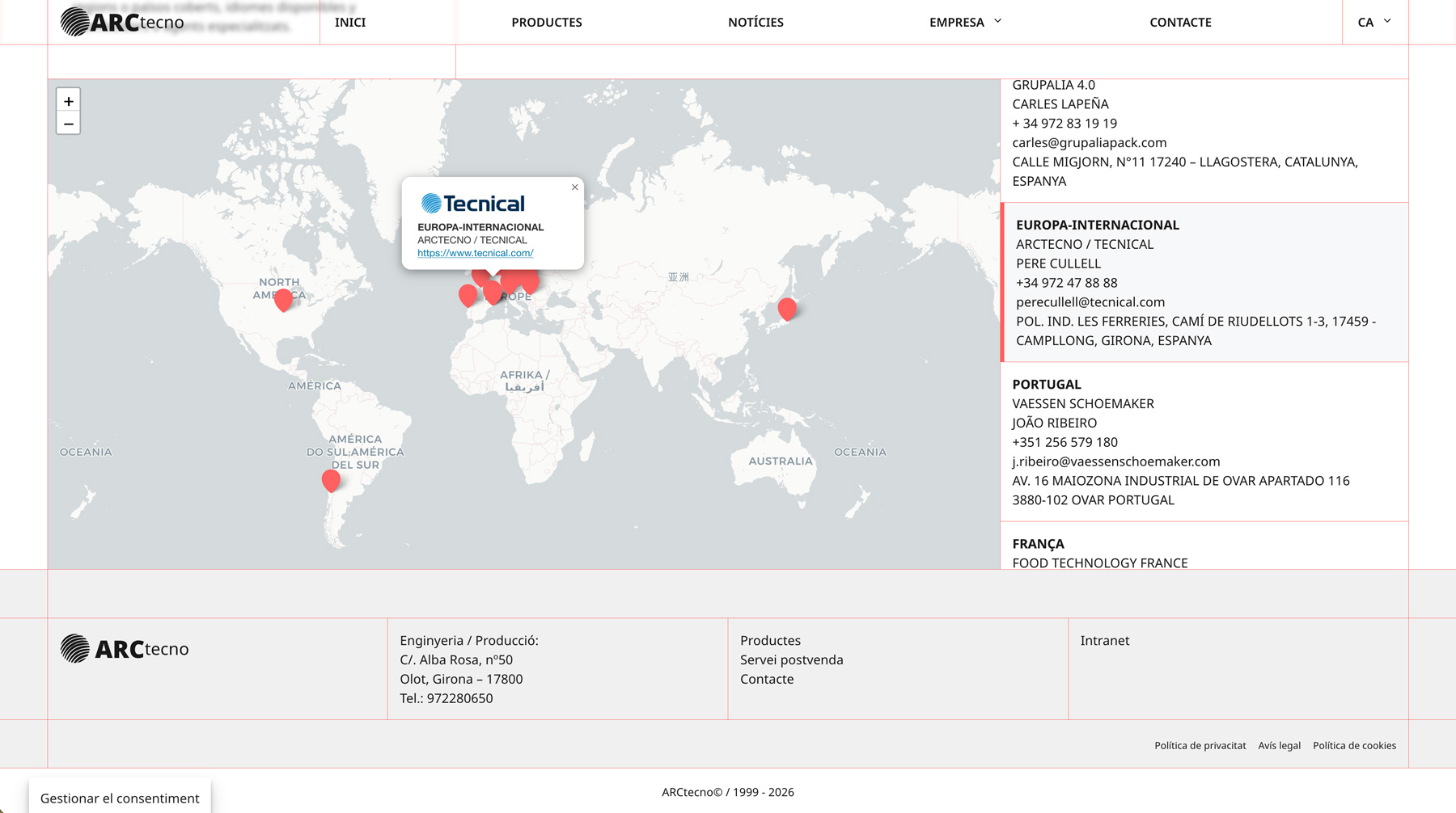ARCtecno 2025 Renovació de web, reenfocament de l'estratègia i noves funcions encarades als comercials i als clienst finals amb una intranet a mida. WordPress | Intranet