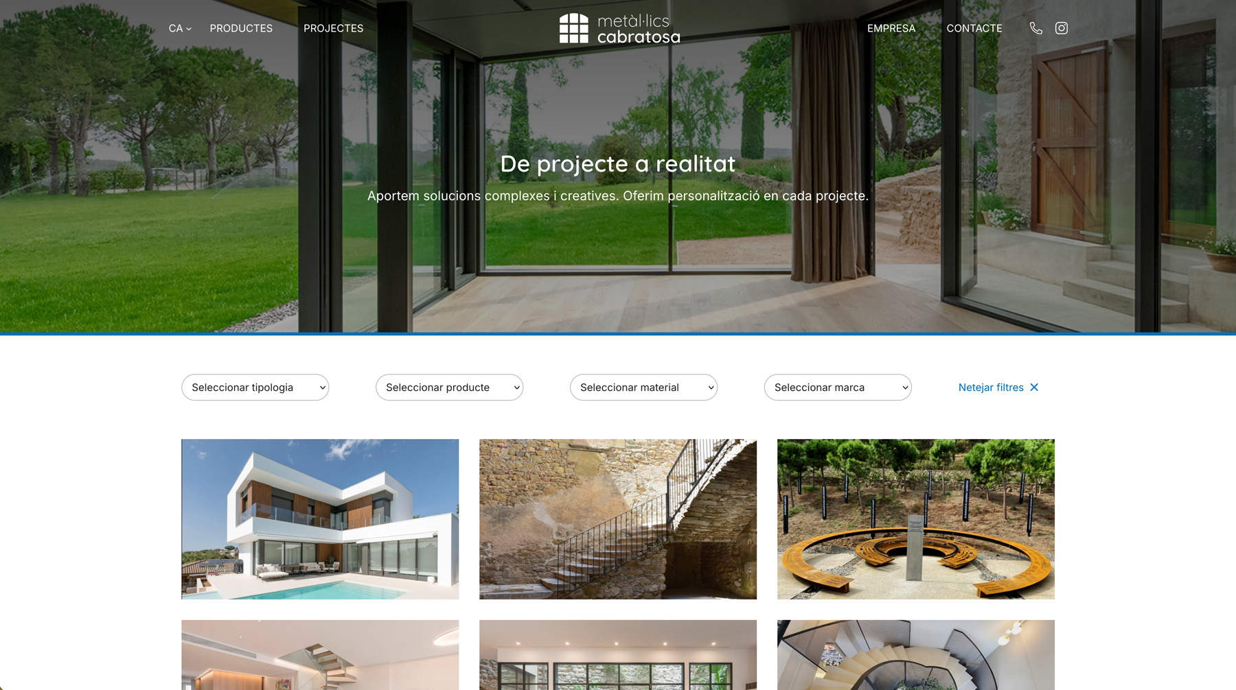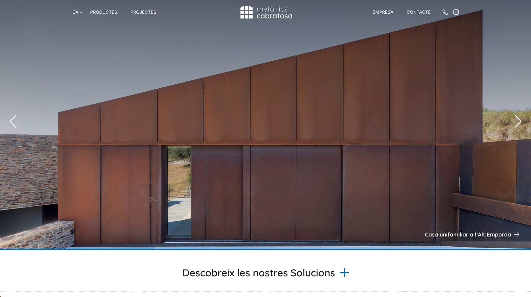 Metàl·liques Cabratosa 2024 Renovació de web, reenfocament de l'estratègia i presentació dels productes i serveis. WordPress | Desenvolupament a mida