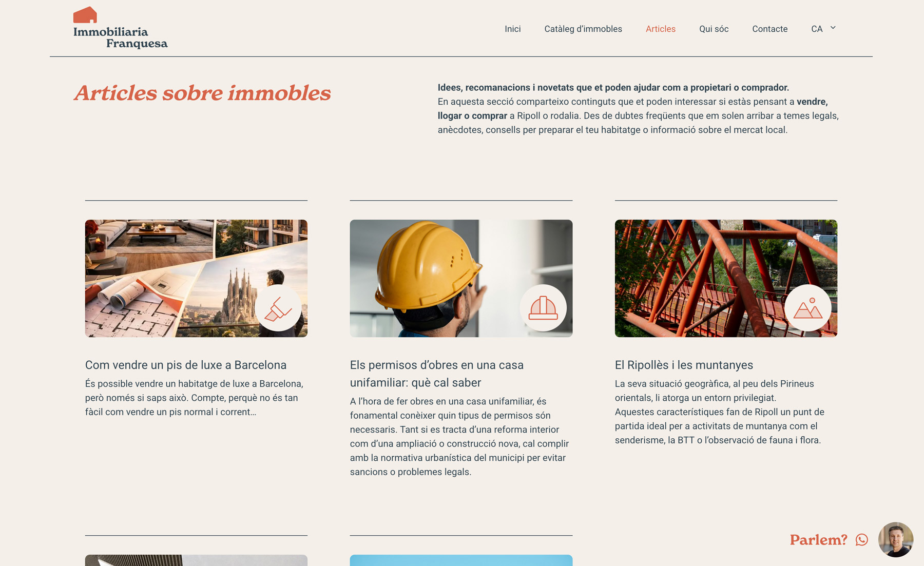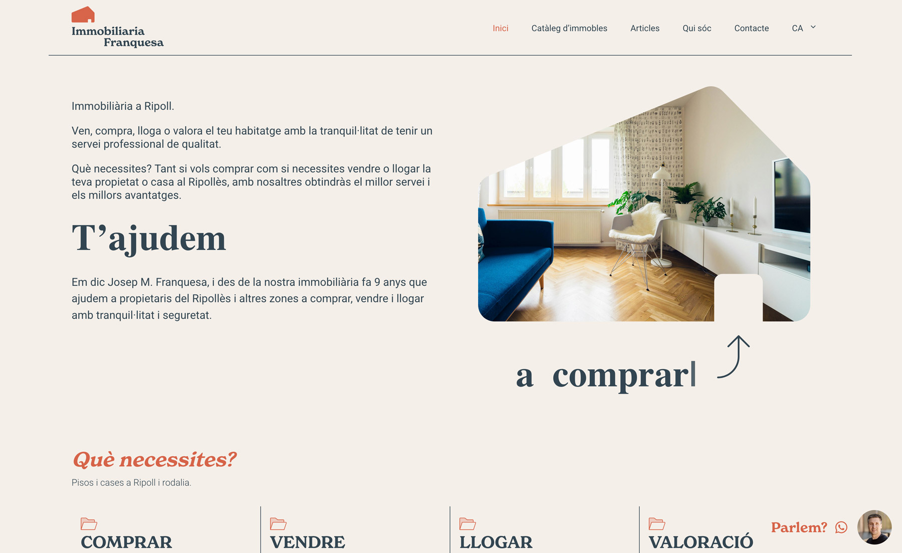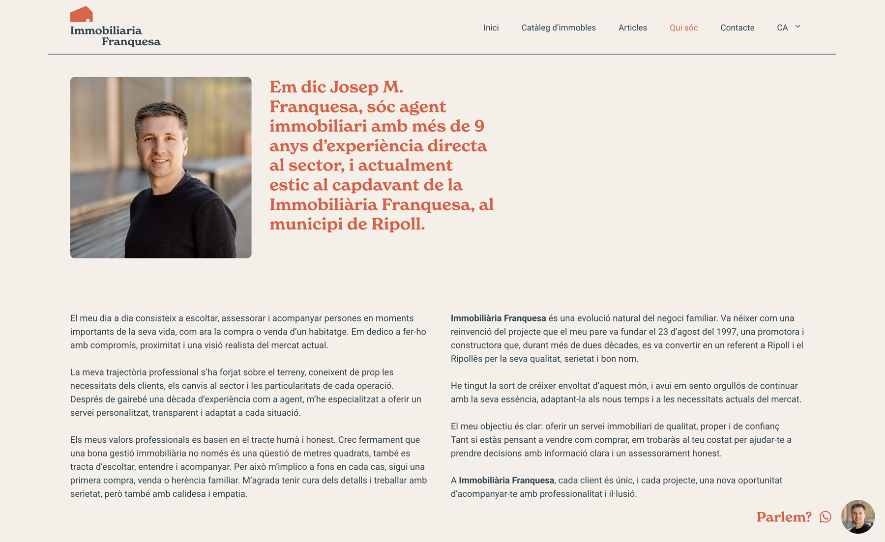 Immobiliaria Franquesa 2025 Renovació de web, reenfocament de l'estratègia i noves funcions. WordPress | Desenvolupament a mida